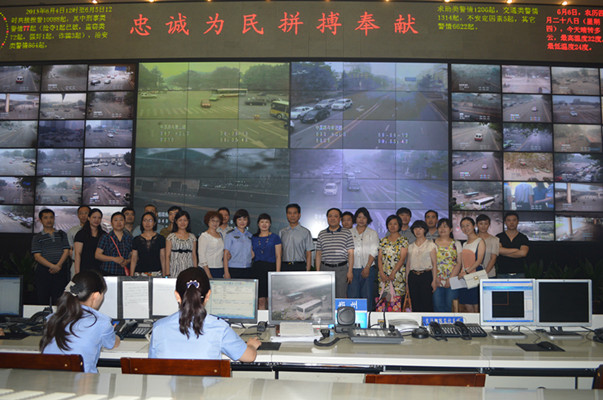 郑州市公安局110指挥中心的孙政委对大家的到来表示热烈欢迎。在她的带领下,大家来到指挥中心。一走进大厅,就听见此起彼伏的报警电话铃声,看着不停忙碌的接警员通过一根细细的电话线帮助素未谋面的报警人,大家都好奇地围了上去。王丹丹警官全程陪伴,详细地为大家介绍指挥中心的基本情况和接警员的工作流程,并耐心地解答大家的疑问。当得知指挥中心平均每天的话务量约为10000余个,每位接警员平均要接警300多宗后,同志们都十分感动。当了解到每天有不计其数的无效、虚报甚至骚扰电话后,大家纷纷表示:骚扰电话会把有限的警务资源给挤占了,今后我们一定要叮嘱身边的亲友尤其是小朋友们,没有警情千万不要乱拨“110”,让更多的人理解、珍惜110。