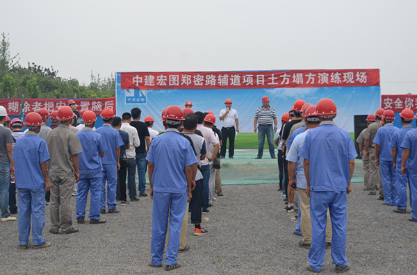为增强现场人员的安全防范意识,提高妥善应对突发事故的能力,7月5日,市政工程建设管理中心组织参建单位100余人,在郑密路辅道工程现场举办了深基坑塌方事故处理相关科目的应急救援演练活动。